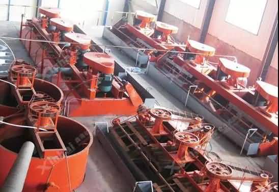浮选机适用于有色黑色金属的选别,还可用于非金属,如:煤莹石、滑石的选别。该浮选机由电动机三角带传动带动叶轮旋转,产生离心作用形成负压,一方面吸入充足的空气与矿浆混合,一方面搅拌矿浆与药物混合,同时细化泡沫,使矿物粘合泡沫之上,浮到矿浆面再形成矿化泡沫。调节闸板高度,控制液面,使有用泡沫被刮板刮出。