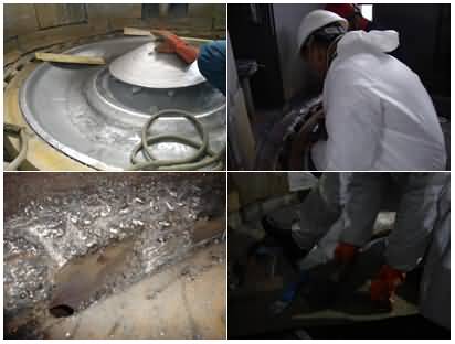 双组分,以陶瓷颗粒及复合陶瓷颗粒、金属碳化物为骨材与PDMG预聚体为基础的耐磨复合材料,具有耐水、耐油、耐酸碱性。适用(-60℃-80℃)设备过流冲蚀、设备的大面积修复、设备预涂耐磨层,如旋流器、浮选柱、浮选机、泡沫槽、分级机、搅拌桶、溜槽、管件类、泵类等修复